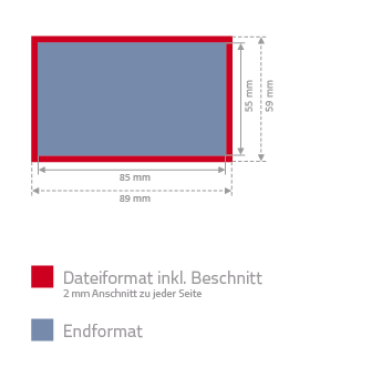 Schriften - insbesondere Kleingedrucktes - sollten vom Rand des Endformates mindestens 3mm Abstand haben, sonst "kleben" diese unschön am Anschnitt.