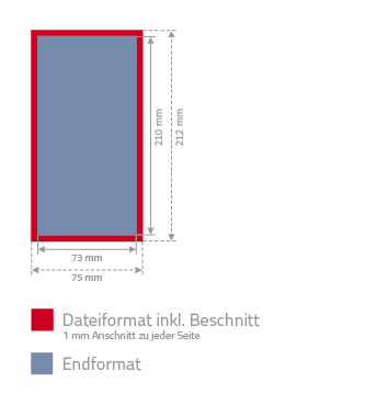 Die Folder werden auf Maß geschnitten; Die Hintergründe auch im Anschnitt weiterführen.