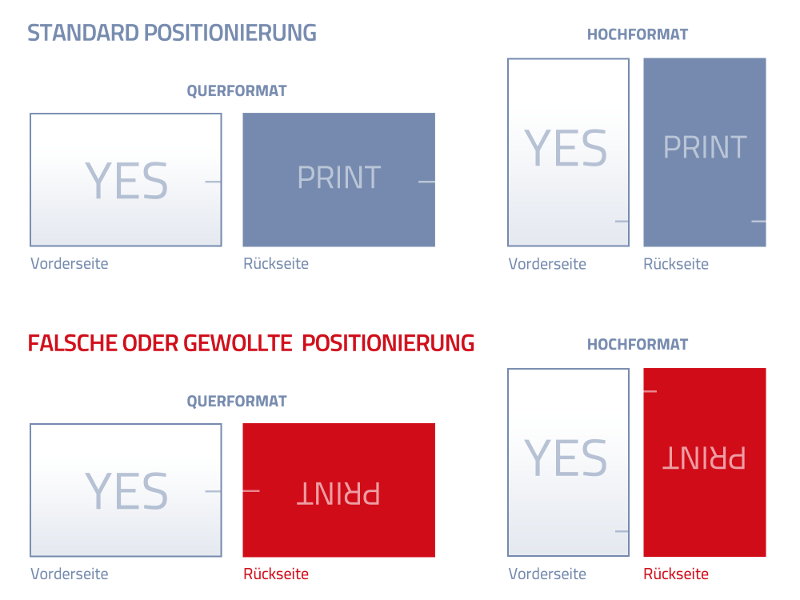Liefern Sie bitte die Vorder- und Rückseite getrennt an. Vermeiden Sie Passer- und Schnittmarken. Alle Schriften müssen in Kurven (Pfade!) gewandelt sein.
